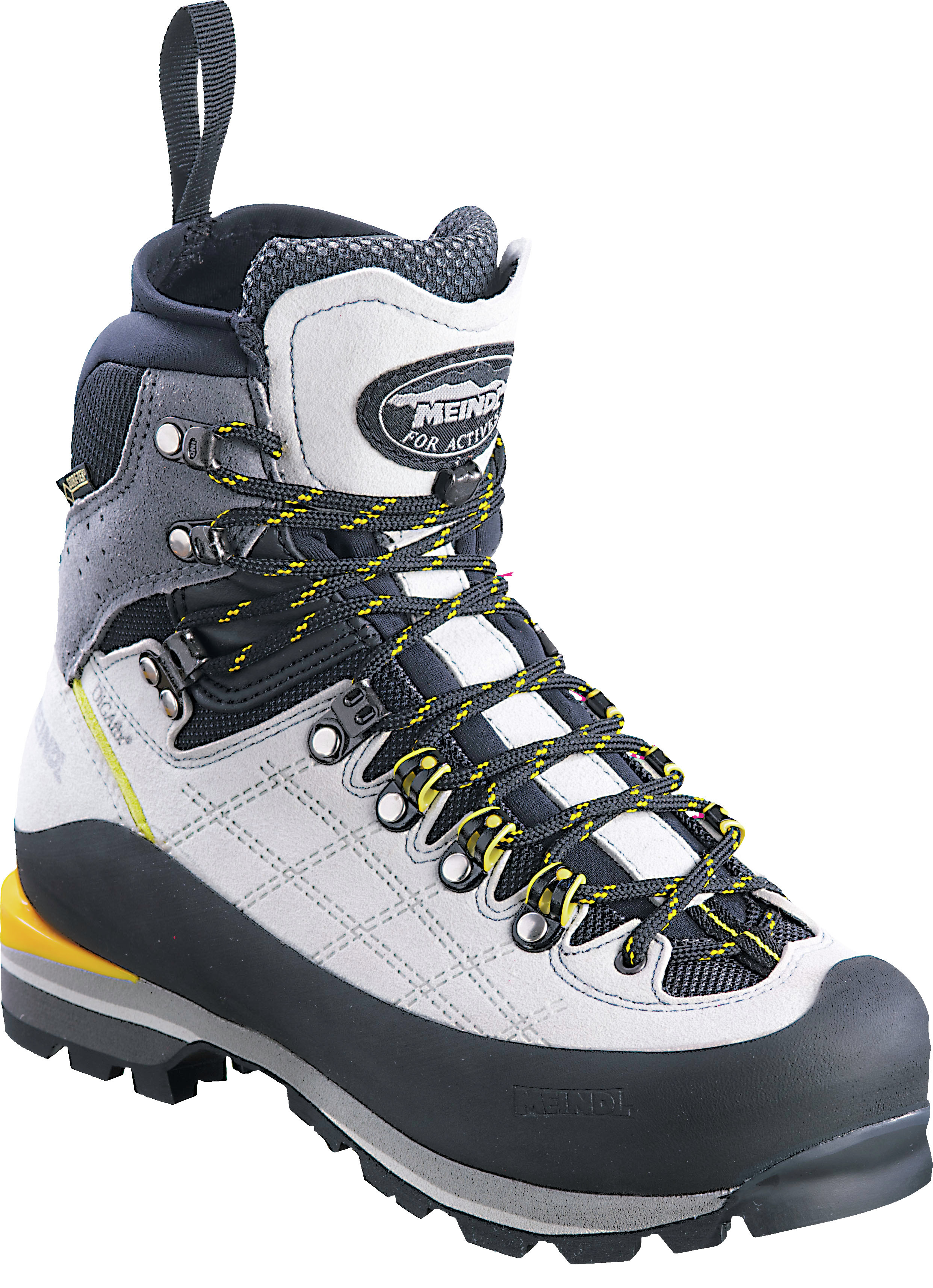 The ultimate high altitude boot, that's the Verte GTX from Meindl. Reliable in extreme conditions and terrain, for high altitude tours and ice climbing, and developed with a team of mountain guides. The Vibram® Alpine sole, reinforced with a carbon plate, gives you secure footing during ascents and climbing as well as good cushioning while descending. The TPU heel spoiler allows for a great grip of all rocking levers of current crampon models.