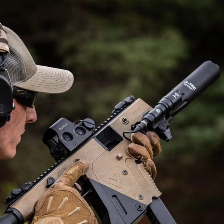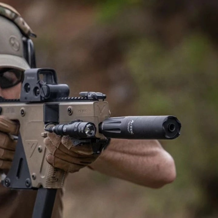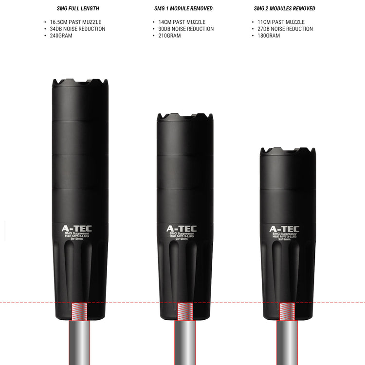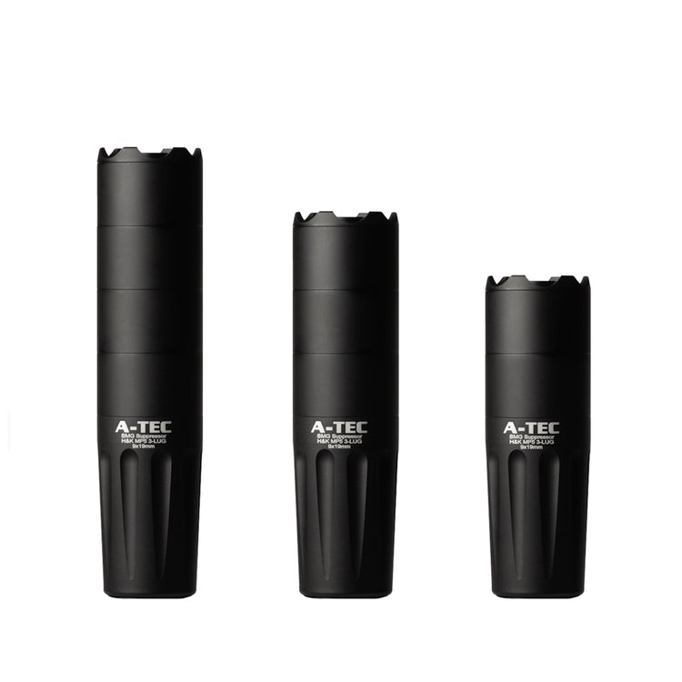 - Important note on reduction performance: Unique to A-Tec, our suppressors are tested to the latest MIL-STD-1474D military standard which is the most stringent and difficult standard to test to. Research shows our competitors do not test to this standard. For comparing to competitors products we prefer to let our reputation do the talking but you will observe our suppressors performing 5-10% better for a stated dB and significantly better for dB reduction vs. weight & length.
