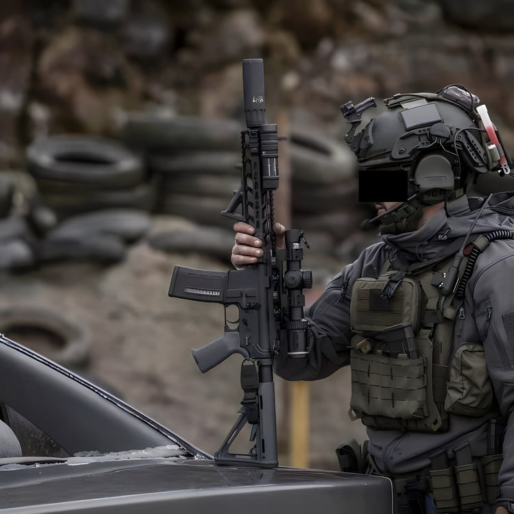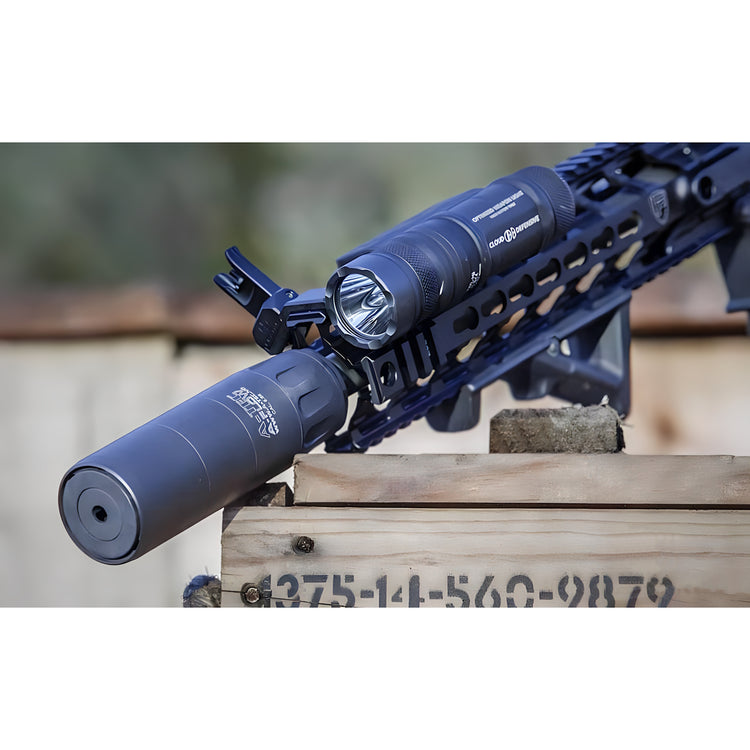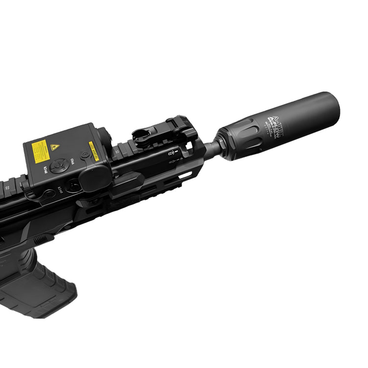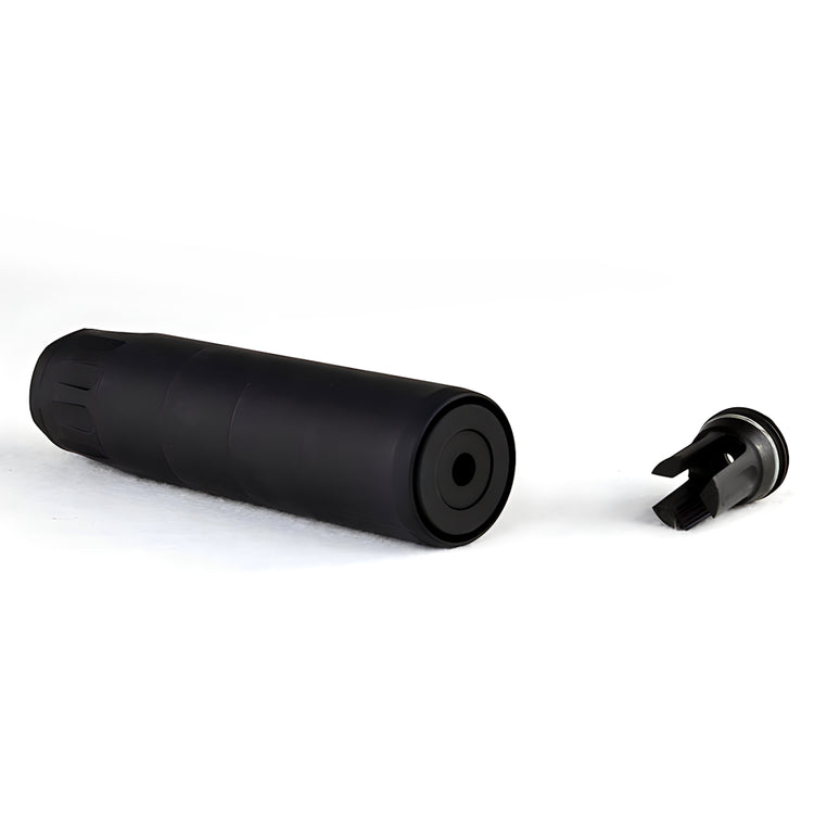 - Quick attaches securely to our proprietary muzzle device. A simple screw onto the device secures it for trouble free employment. A gas seal interface eliminates visual distractions by preventing blast escaping at the attachment point.