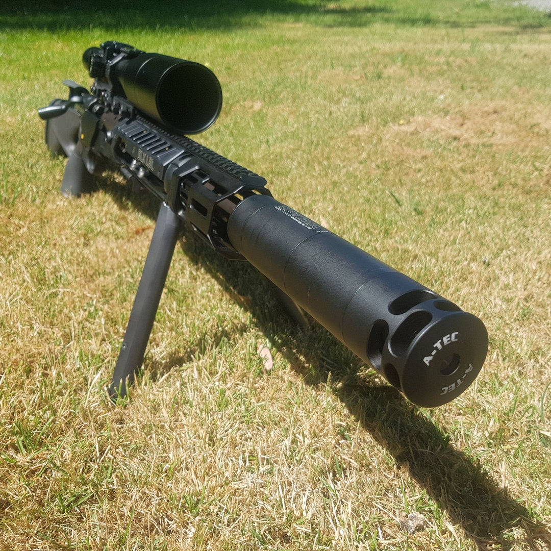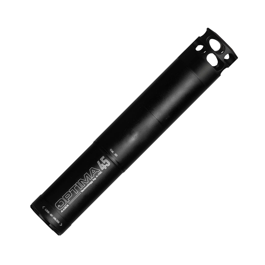 An additional module that will modify your existing A-TEC Optima 45 (Optima Front) to perform as a suppressor/muzzle brake hybrid. Attached in place of the end cap of the suppressor, it does not reduce the internal space of the suppressor.