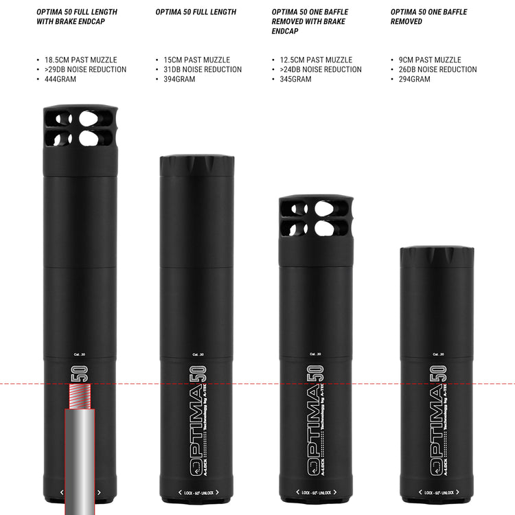 - Removing a module decreases the noise reduction effect by 3-5dB; depending on the calibre and barrel length.