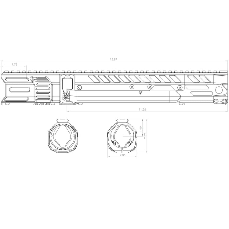 - 5 Slot M-LOC attachment points on forend tip and underside for attaching picatinny rails and accessories.