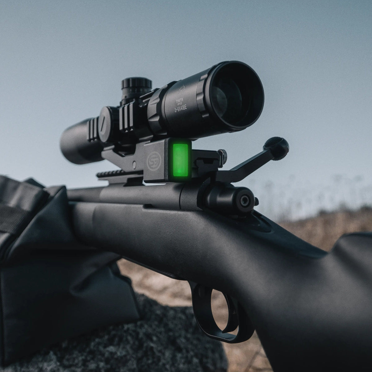 • Bright LEDs allow you to see if the rifle is level in your peripheral vision without taking your eyes off the target, and custom calibration allows you to mount the device in any orientation anywhere on the rifle.