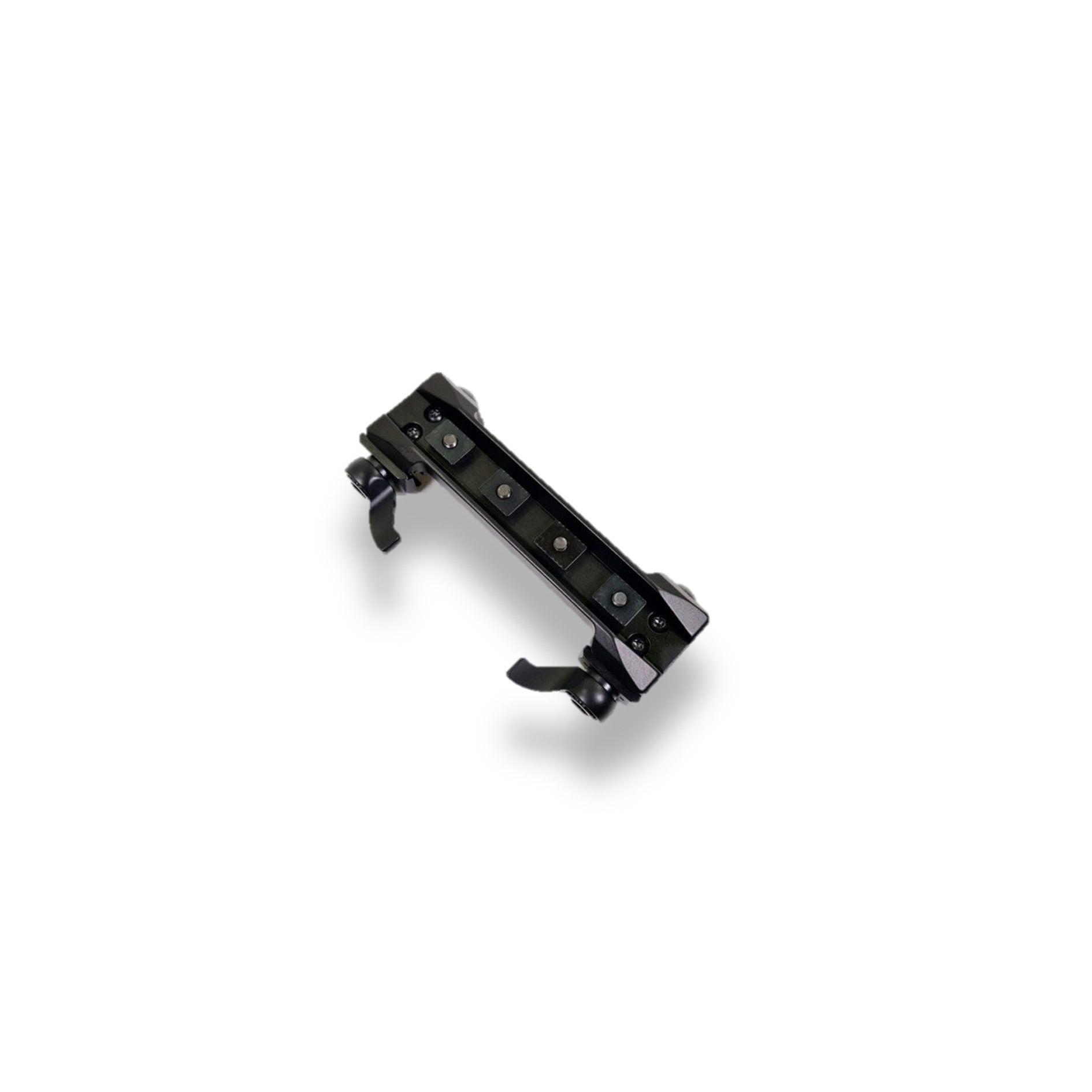 Recknagel one piece quick release mount to fit Zeiss/Blaser scopes with an integral rail on the underside of the scope, which then can be mounted to a picatinny rail.