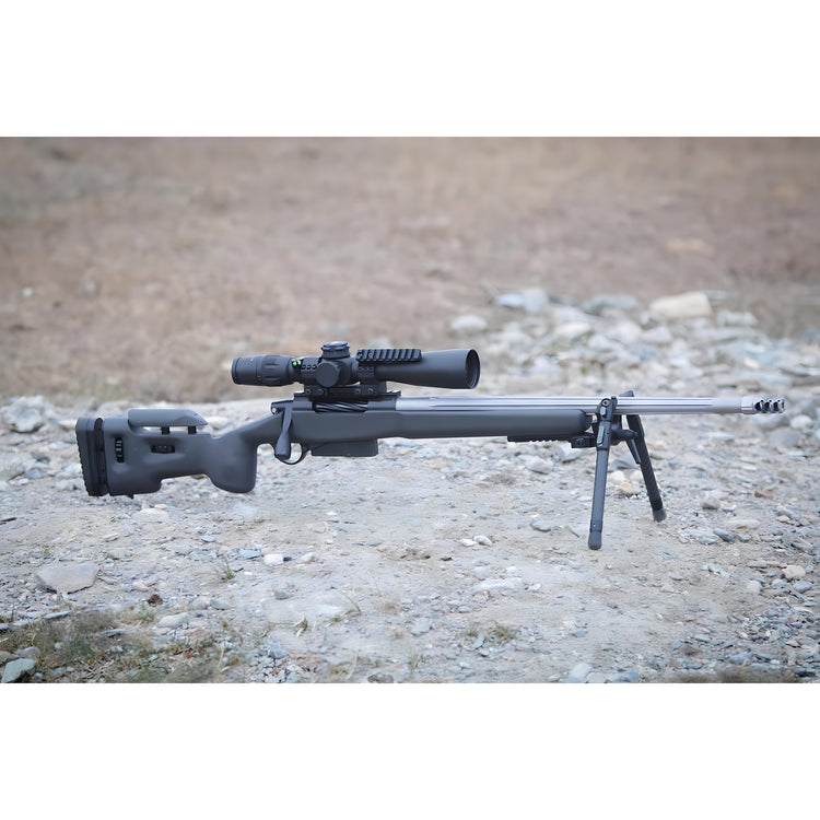 - M-Lok bipod and QD Picatinny adapter compatibility for versatile mounting options.