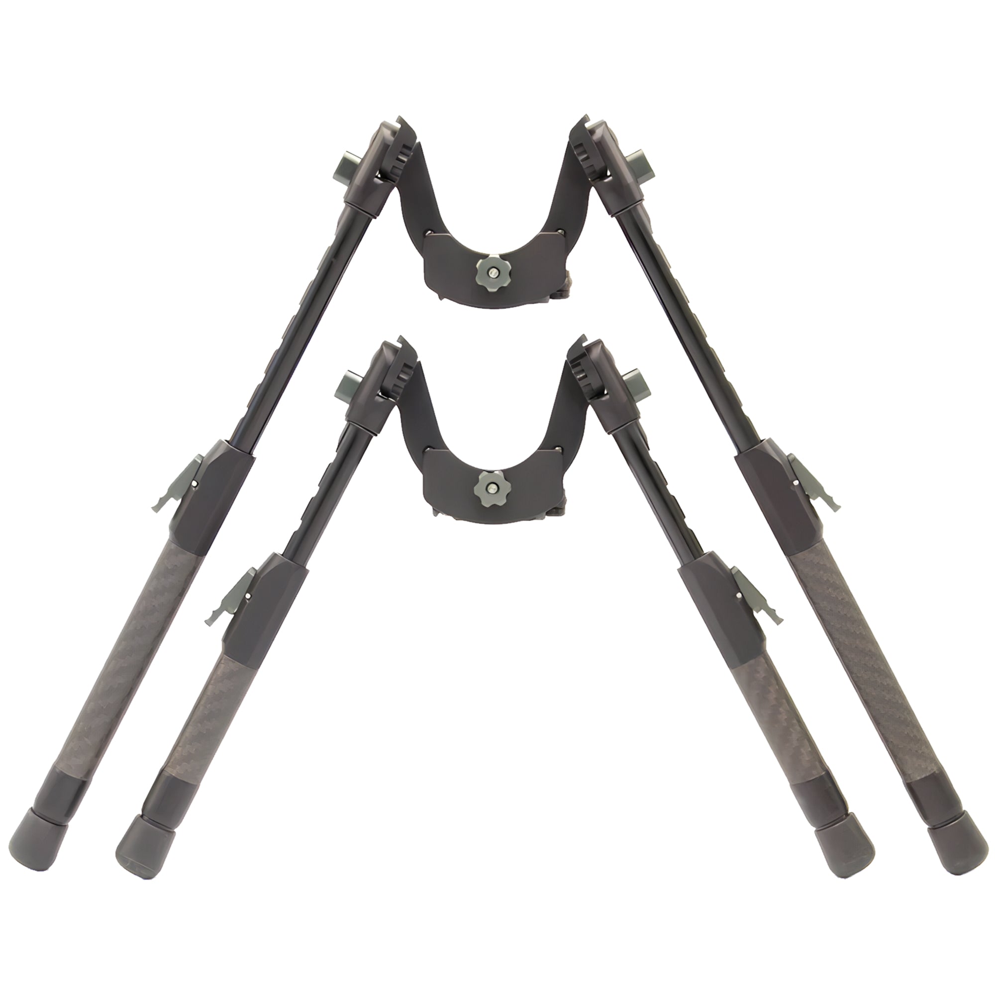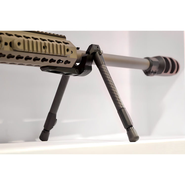 The result is a carbon fiber and aluminum bipod that is successfully tested up to .338 Lap Mag. calibre.