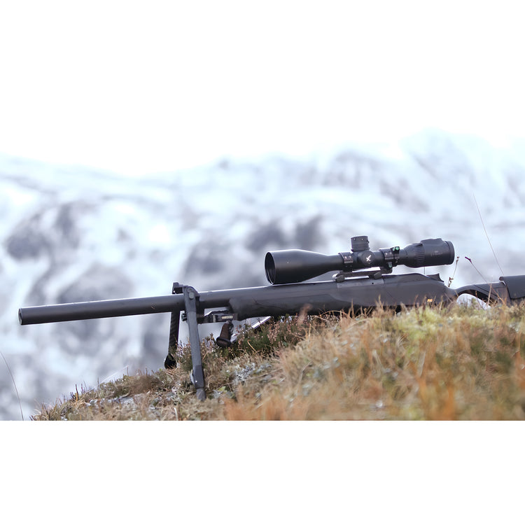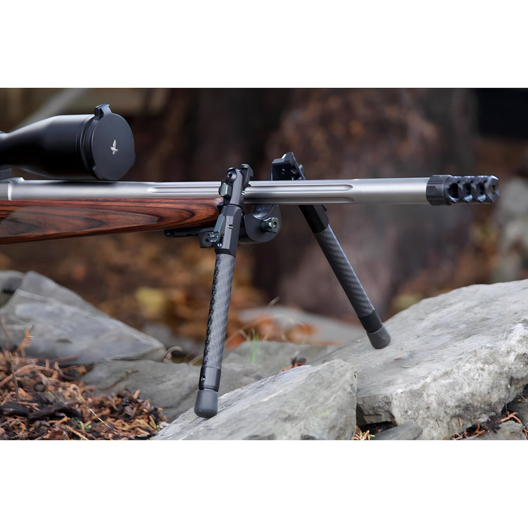 The Evolution Bipod's groundbreaking mechanism rotates around the rifle barrel axis, not under the stock, for an incredible natural feel.